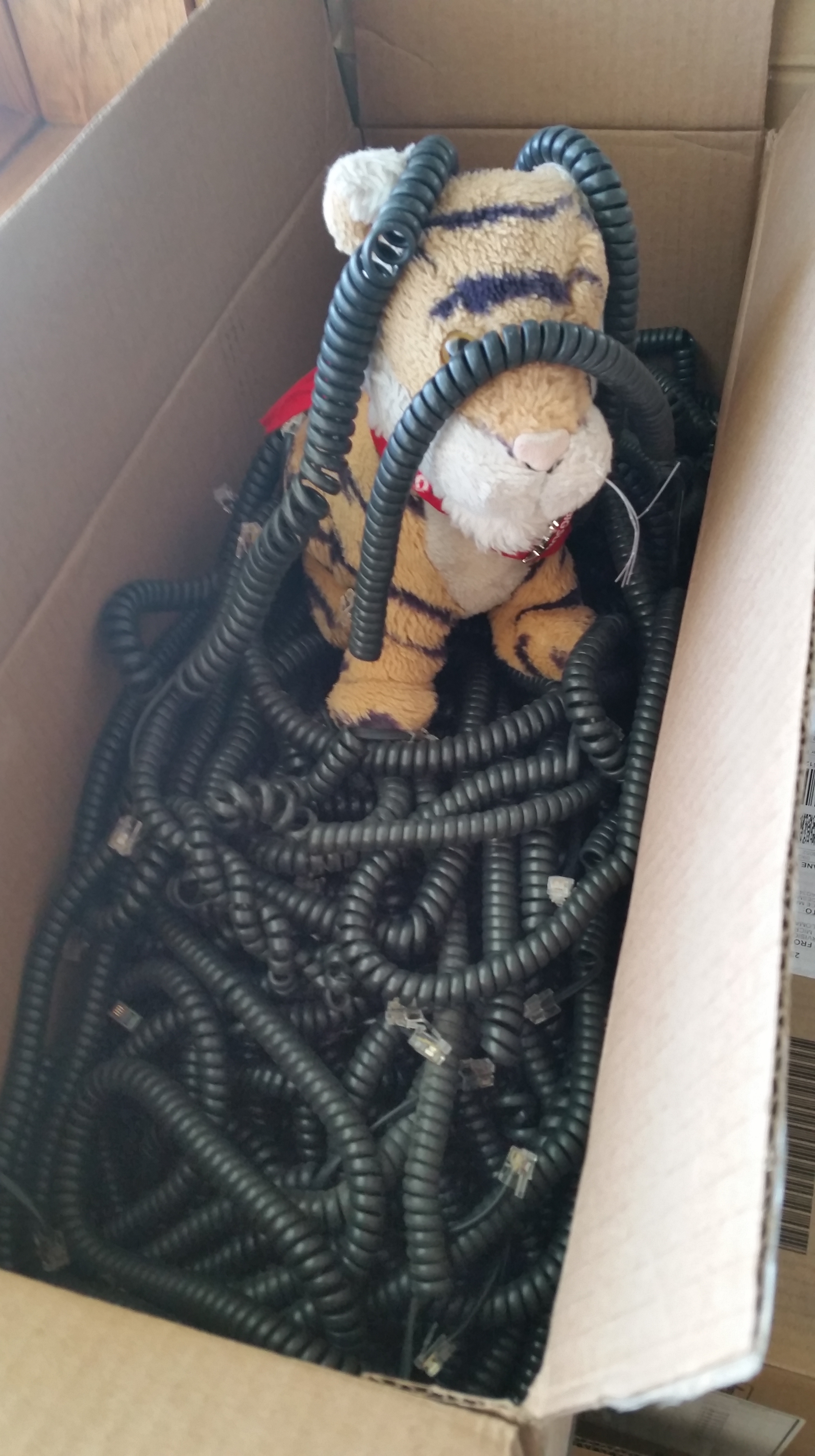 We also took apart all the phone equipment and put it in separate boxes. There were about a thousand handsets and I love to play with the curly handset cables!