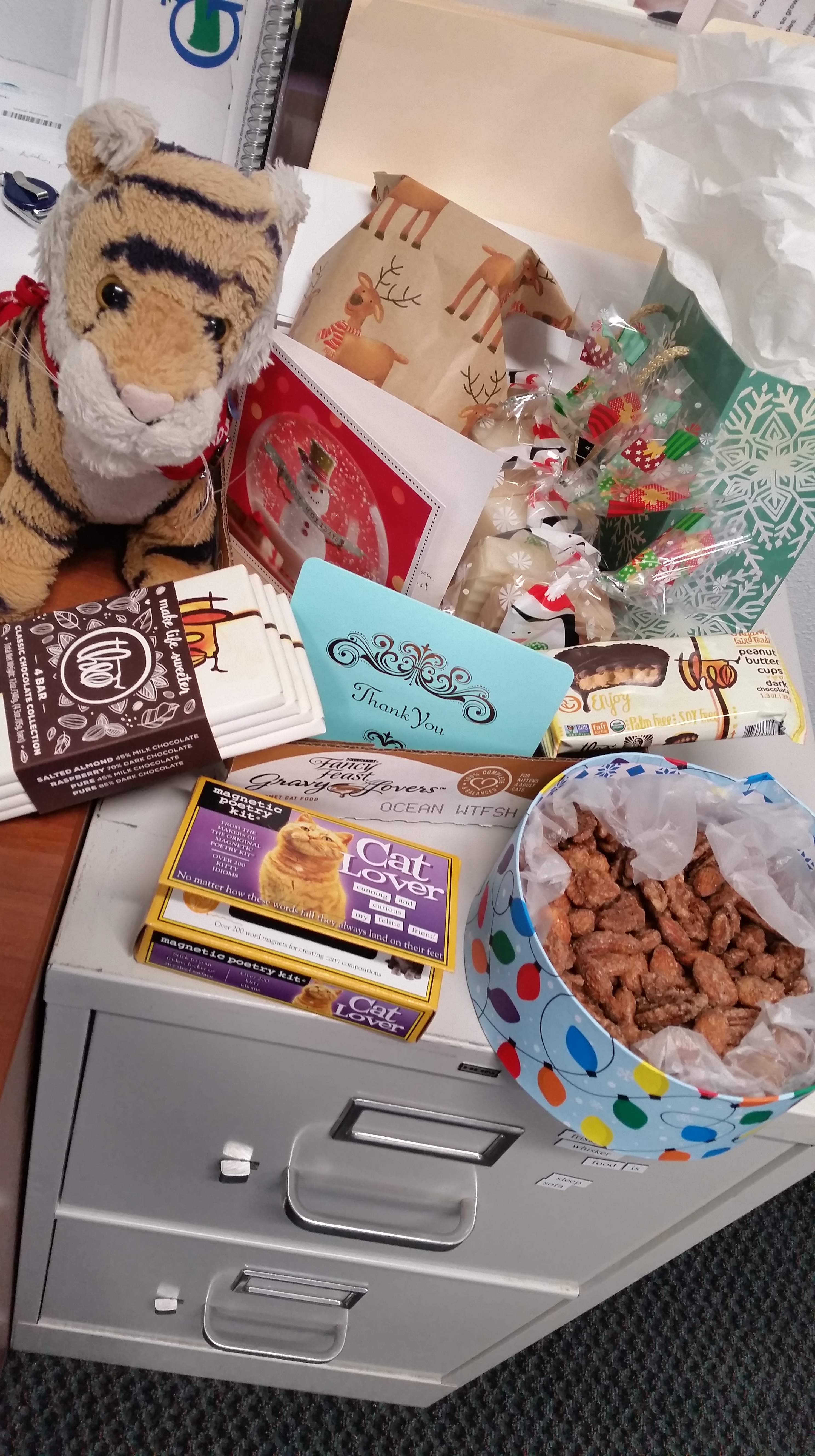 I had to remind mom not to FORGET to take a picture of gifts from people at work.