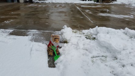 Oh Boy oh boy it snowed!!!  I got out my green shovel to help mom clear the walkway and driveway. Good thing mom’s shovel is bigger than mine or I’d be here all day.