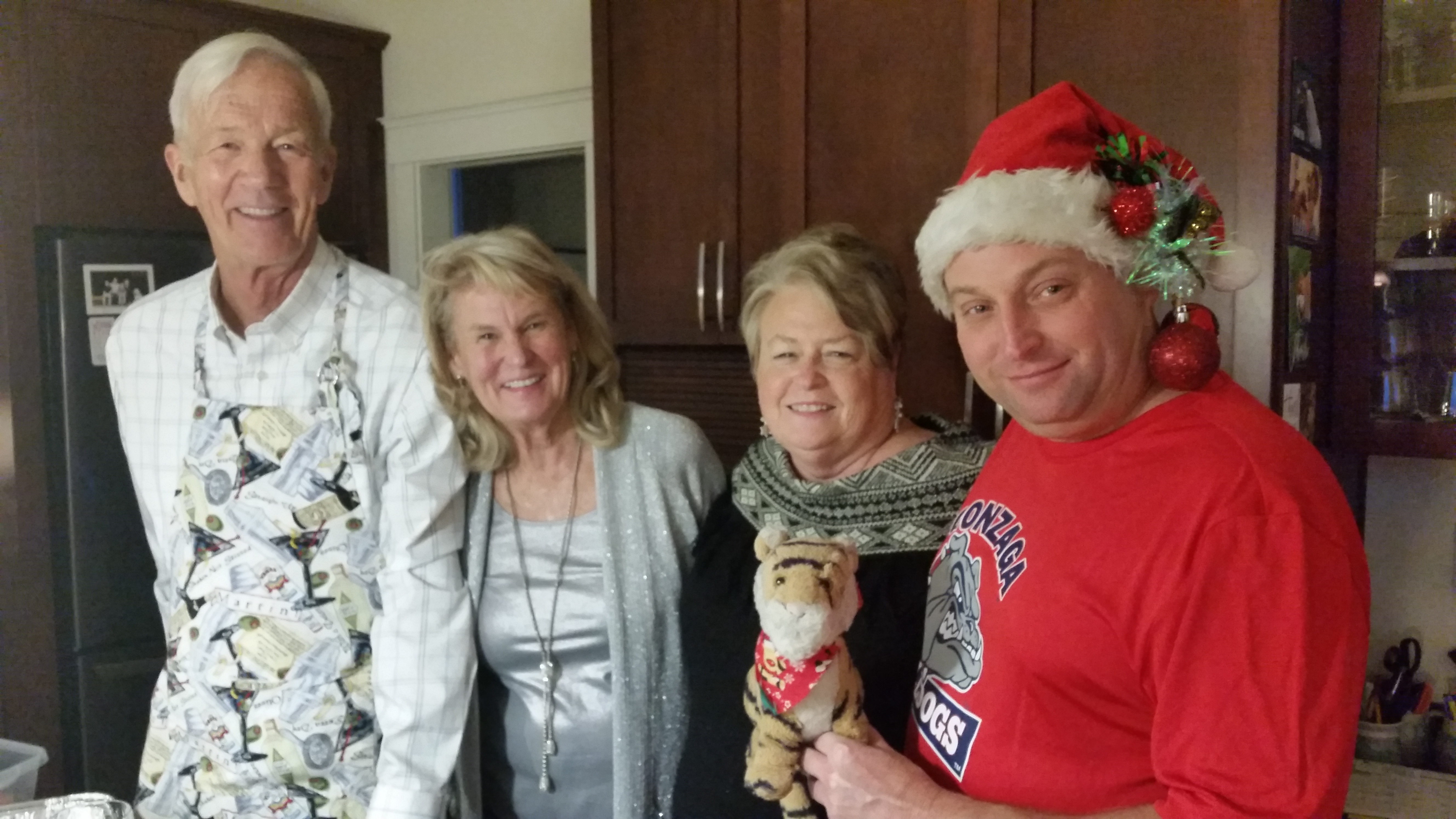 We went to a party on Christmas!  Here I am with our awesome neighbors Gary and Joni!  And their friends Linda and Tyler!  The men are all so handsome and Joni and Linda are so beautiful and super nice too! The food was awesome and we had PIE for dessert! and afterwards we played pool and Joni and Gary told us all about when they lived in Ghana in Africa! We had a super duper time!