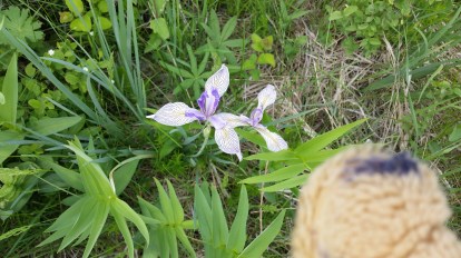 Mom let me use the camera!!! He is a photo of some wild iris and my paw got in the picture too. haha! The little buttons on the camera are very fidgety.