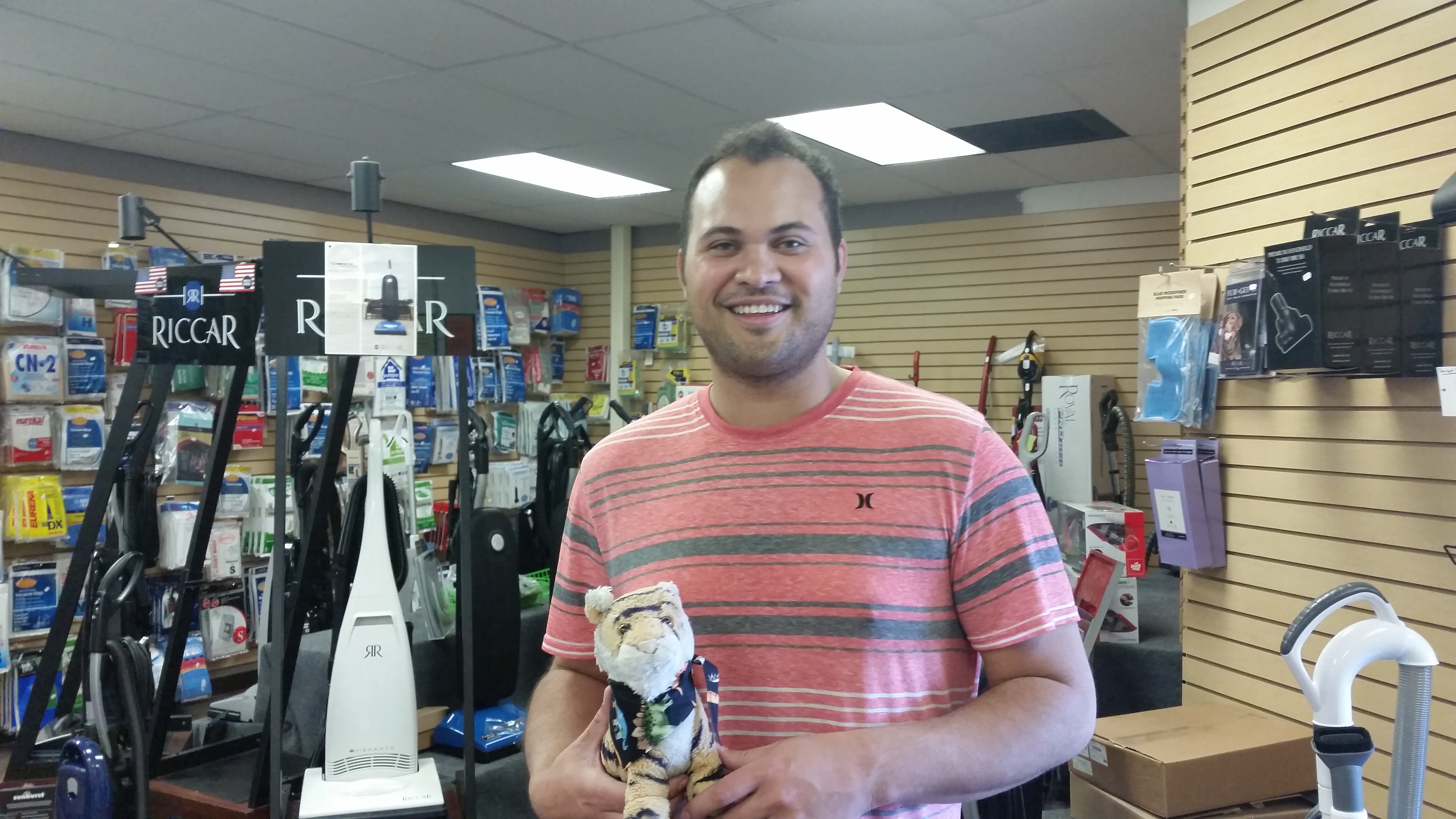 We bought a new vacoom!!!  Mom says it is spelled vacuum but that does not look right. Here I am with Chris who first loaned us a vacoom to try out and also carried all the vacooms and loaded them in and out of the car because not only did we test one but we bought a new one and traded in our old one!  I did not know you could trade in an old vacoom mom says it is a good thing or else we would have had to figure out what to do with it. Chris was super helpful and super handsome. We recommend J&J’s Vacoom!