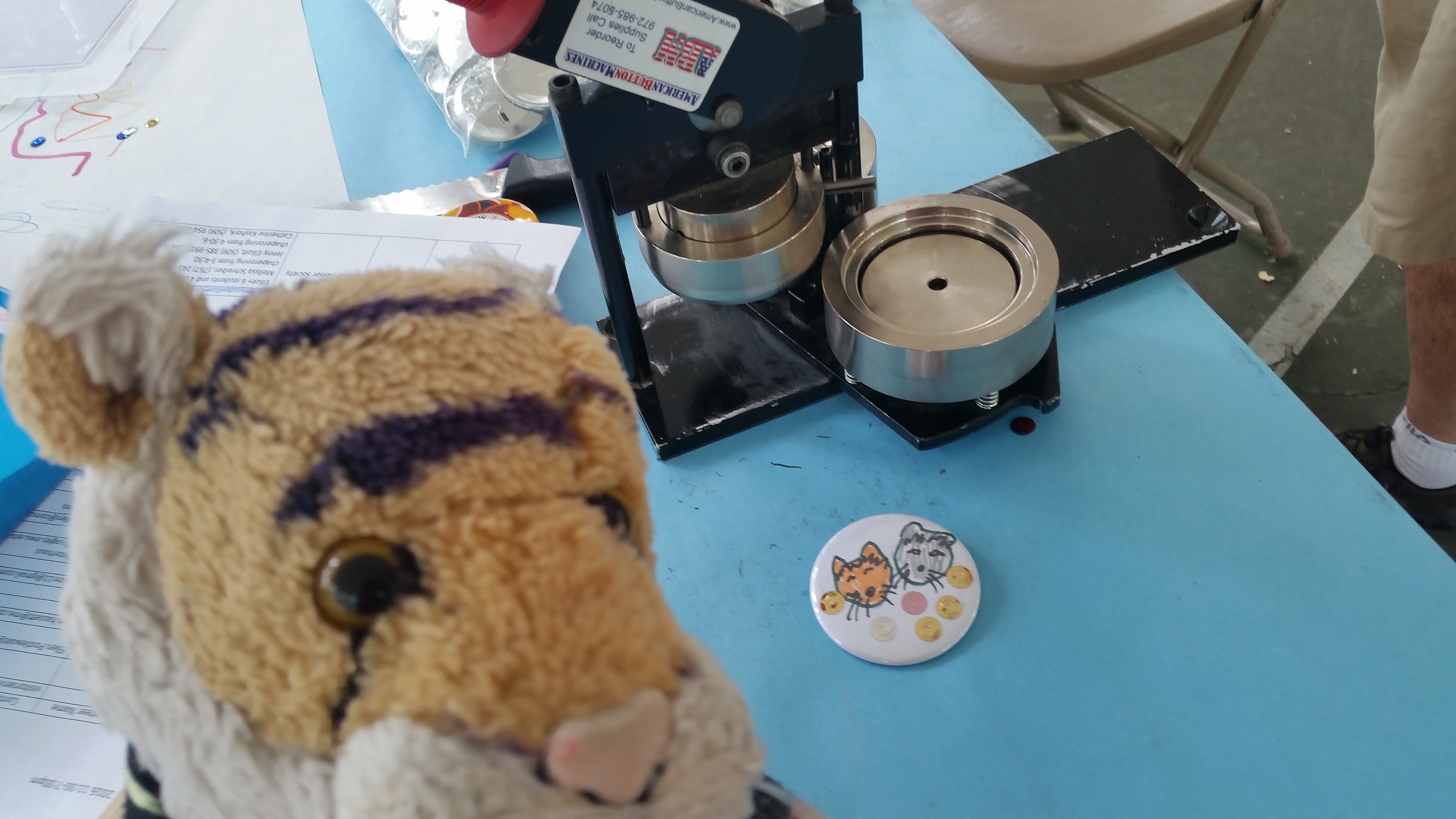 There were all kinds of activities for kids and I made a button!  Mom helped a little with the drawing it is me and Lars Larson!  The nice man who runs the machine that makes the button told us about the sequins we could add so I picked out lots!