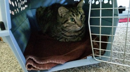 We have another foster cat now we named him Wesley. He is from a hoarding case that has been in the news. He is super shy and likes to be in hiding places like a carrier. He is doing good and being brave and now we can sit in the room with him while he eats. SCRAPS could sure use some more foster parents so if you can please help out! They can supply everything you need, you just provide the space and the love.