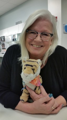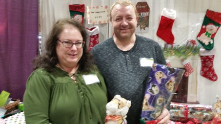 Here I am with Chrissy and John who sell wonderful catnip pillows in fun fabric that our cats go bonkers for. They are really nice and love Tigers and Chrissy is gorgeous and John is very handsome but not quite as handsome as me.
