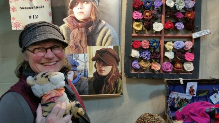 We went to an Arts Festival and went SHOPPING! Mom does not normally like to shop I do not know why. We even went to Fred Meyer and stocked up on things like cereal and kitty litter and mom says this way we won’t have to go there again until January. Anyway at the arts festival we bought a cool hat from Leslie who makes hats from reclaimed fabric we have other hats that she has made they are great! Sweater Heads is the name of her business. Leslie is really nice and super beautiful and fun.