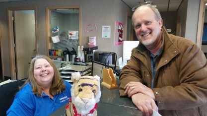 Also last week we met Sue and Rich at the collision center where they are going to fix the front end of the car from when mom ran into the stop sign. They were both super nice and helpful and Sue is gorgeous and Rich is very handsome.