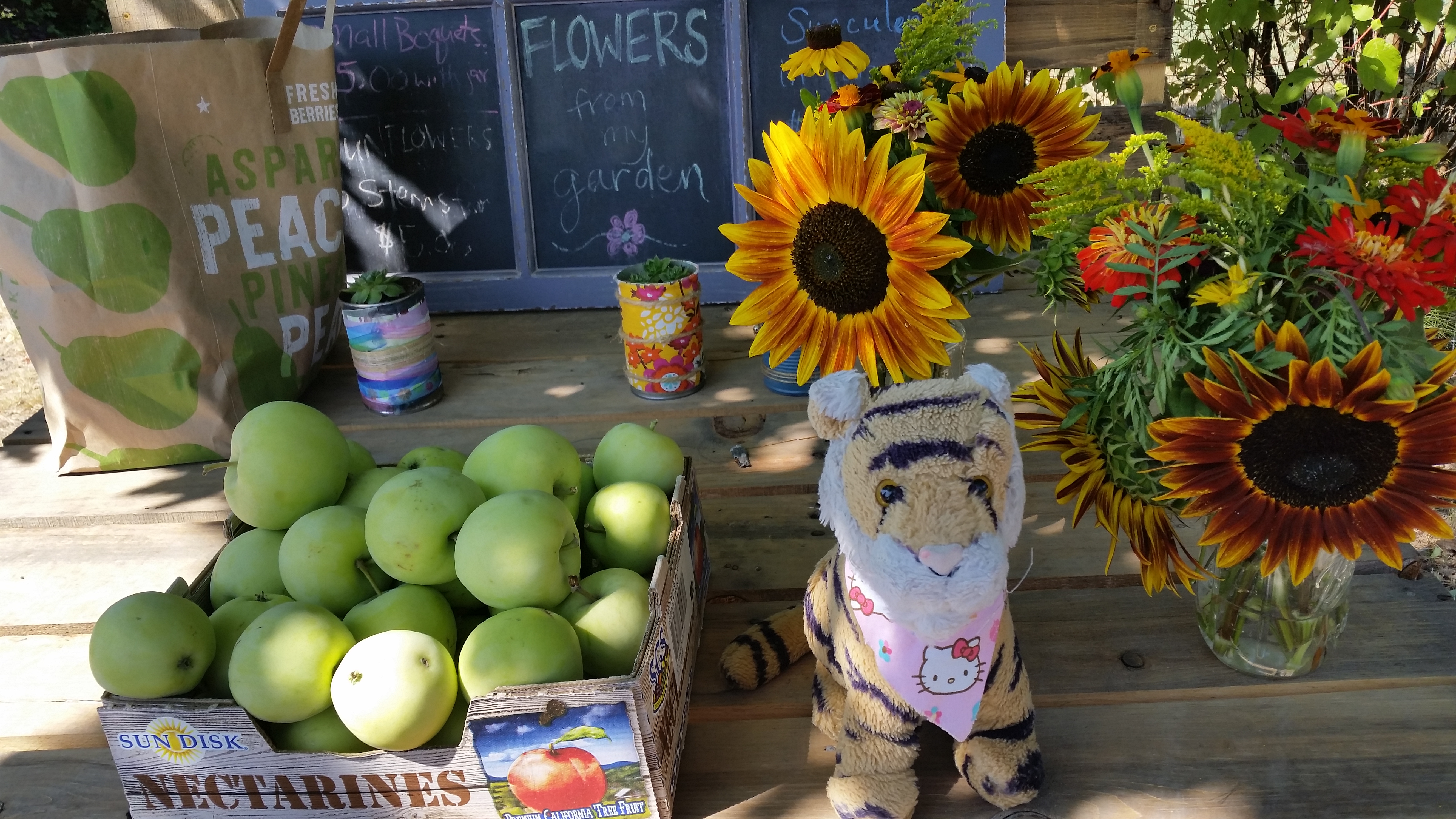 On our bike rides we often pass small farm stands like this one that had apples and flowers! It is important to support your local small businesses.