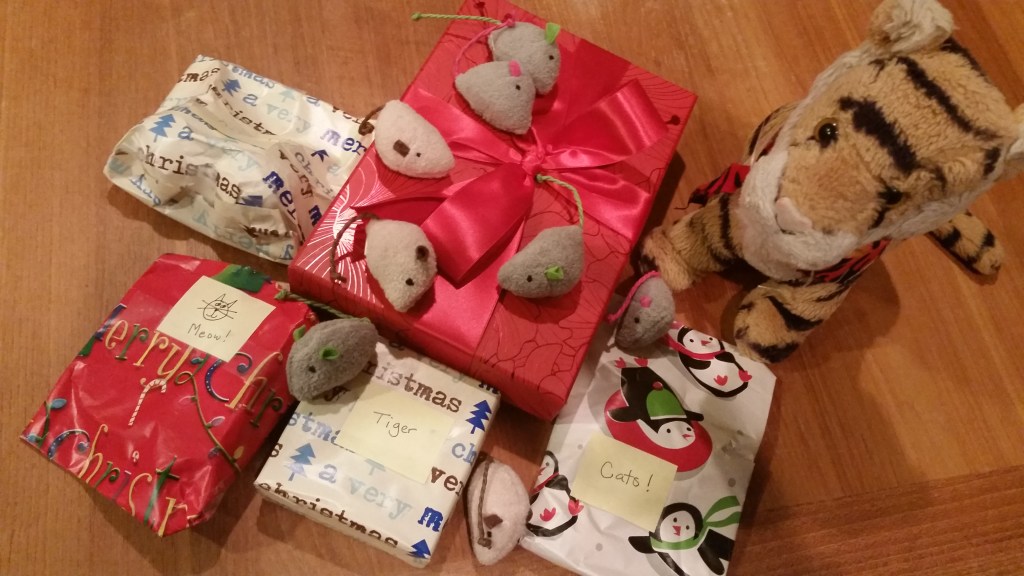 We got gifts from Auntie Darcy!!!! Most of them were for me and the cats.