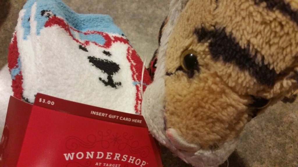Mom got a few things like these socks that Auntie Darcy carefully removed the price sticker from the back but left the price on the front ha ha! $3.00 is a lot of money!