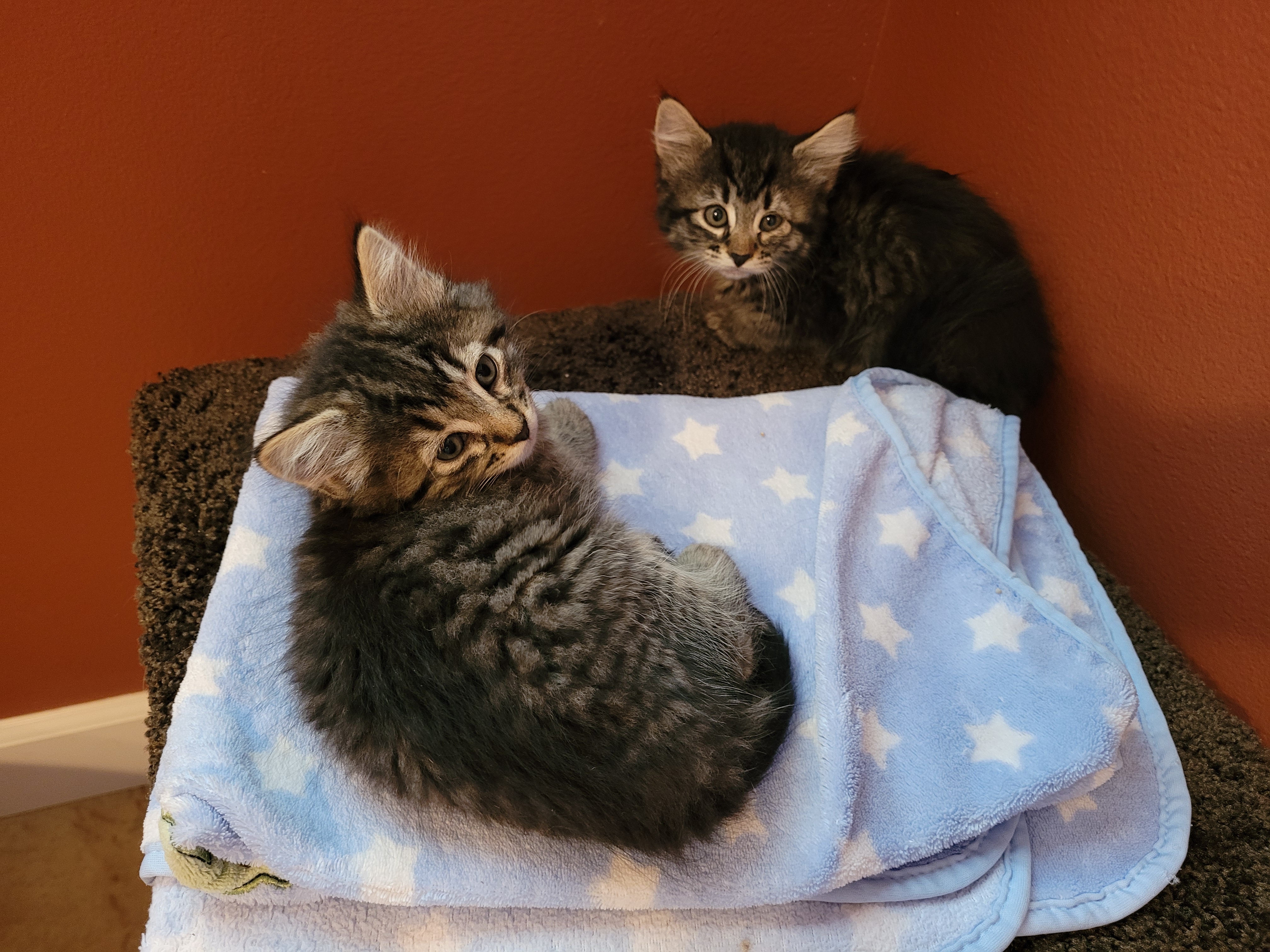 OMG the best thing happened! Our neighbors invited us over to their house for an ice cream party! Here I am with Heather and Mitch who had the party and provided the ICE CREAM !!! Heather is so beautiful and Mitch is very handsome. They are wonderful people and awesome neighbors!This week our air conditioning broke and that was not fun ! The house got very hot in the evenings. This is me with John who is a senior technician and the service manager at Smith Heating. He got the AC fixed YAYYYYYYY !!!! John is super handsome and he was so nice and helpful and it is such a relief to have the AC working; it is going to be over 100 degrees here for a week straight!We have been very busy fostering kittens. We have a set of 3 black ones, two of which are not friendly. We are calling them the SourPuss Family! Here is Jade who has her tummy shaved because she was spayed. She is finally getting a little friendly and lets mom pet her.Here is the other set of kittens! At first we just had the boy tabby (in the front) and he was so sad and scared and lonely. He had an eye infection. Then after a few days the shelter called us up and said his sister was at the shelter!! She was found in the same area, had the same kind of eye infection, and looks like his twin! So we went and picked her up and the boy tabby was SOOOO happy! Now he has his sister and best friend and has company 24/7 and they play together and are not lonely. The girl tabby is still getting meds for her eye, you can see her left eye is not 100% yet. She is still a little shy.