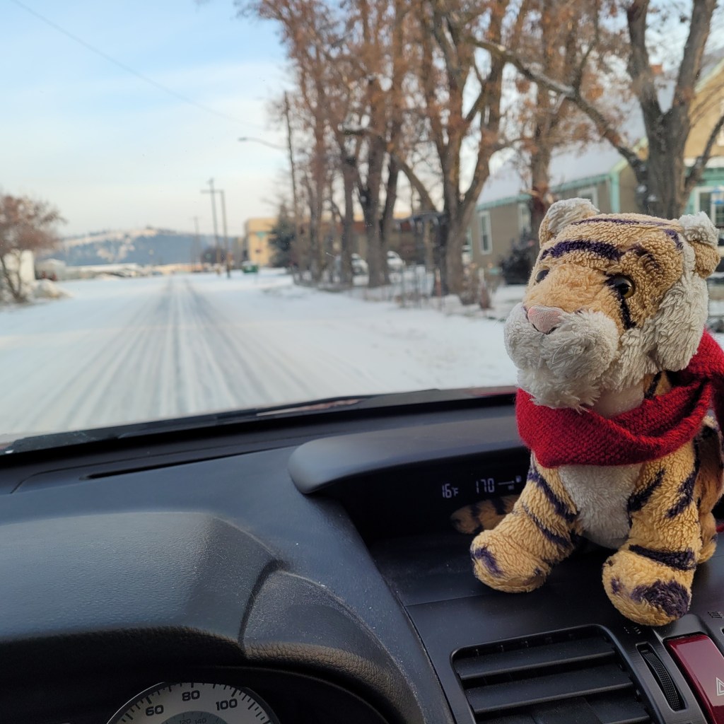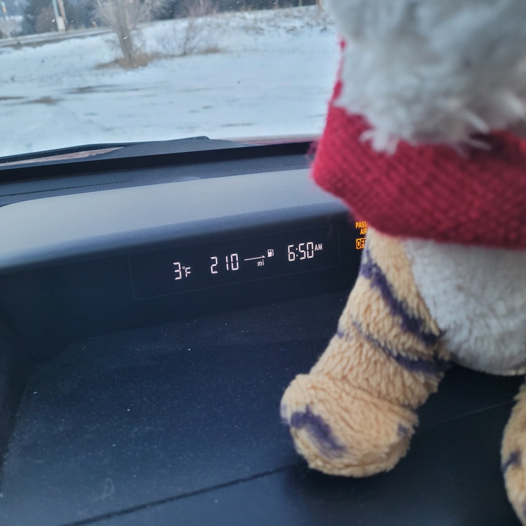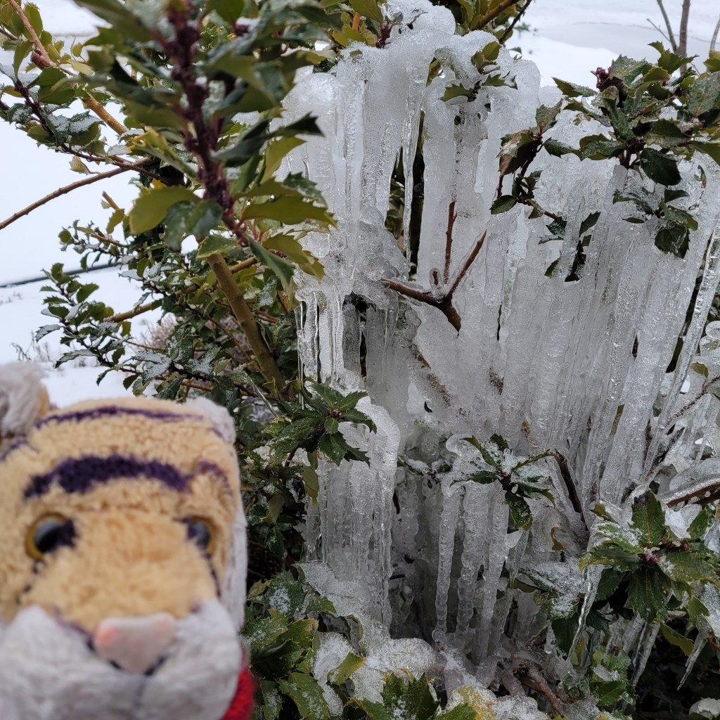 It has been very cold! Here is the temperature one morning it was 3 degrees! Brrrr! It snowed one day and we had to shovel a lot. This is the road near work.Here are some icicles that formed on one of our holly bushes. Sometimes water from the roof gutter lands here and freezes! Holly bushes are pretty tough!OMG at work Rowan brought in cupcakes that she made!!! They are so beautifully made and super delicious I am sure but mom would not let me have one darn it all. Rowan is super gorgeous, super nice, and super smart. She is an Engineer!