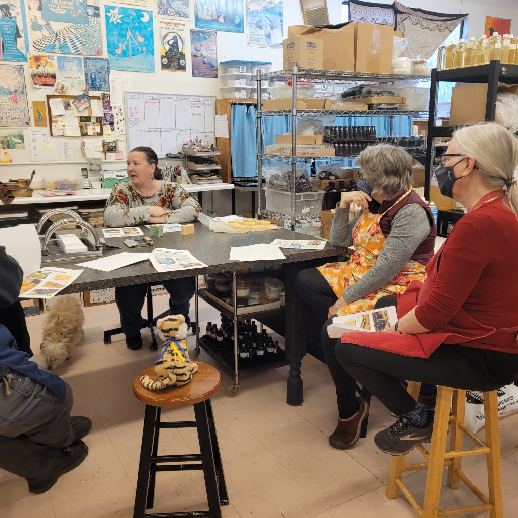First of all it is the middle of April and we are getting SNOW !!! Yippee! I think it is great but mom is not so excited.We went to a soap class to learn how to make goats milk soap. It was VERY interesting and a lot of fun! We met some really nice people who love to make soap, just like us!This is me with Tammy who taught the class! She is super nice and super beautiful and knows all about making soap and also all about goats! She raises goats !!!! OMG mom we should totally get some goats!!!!