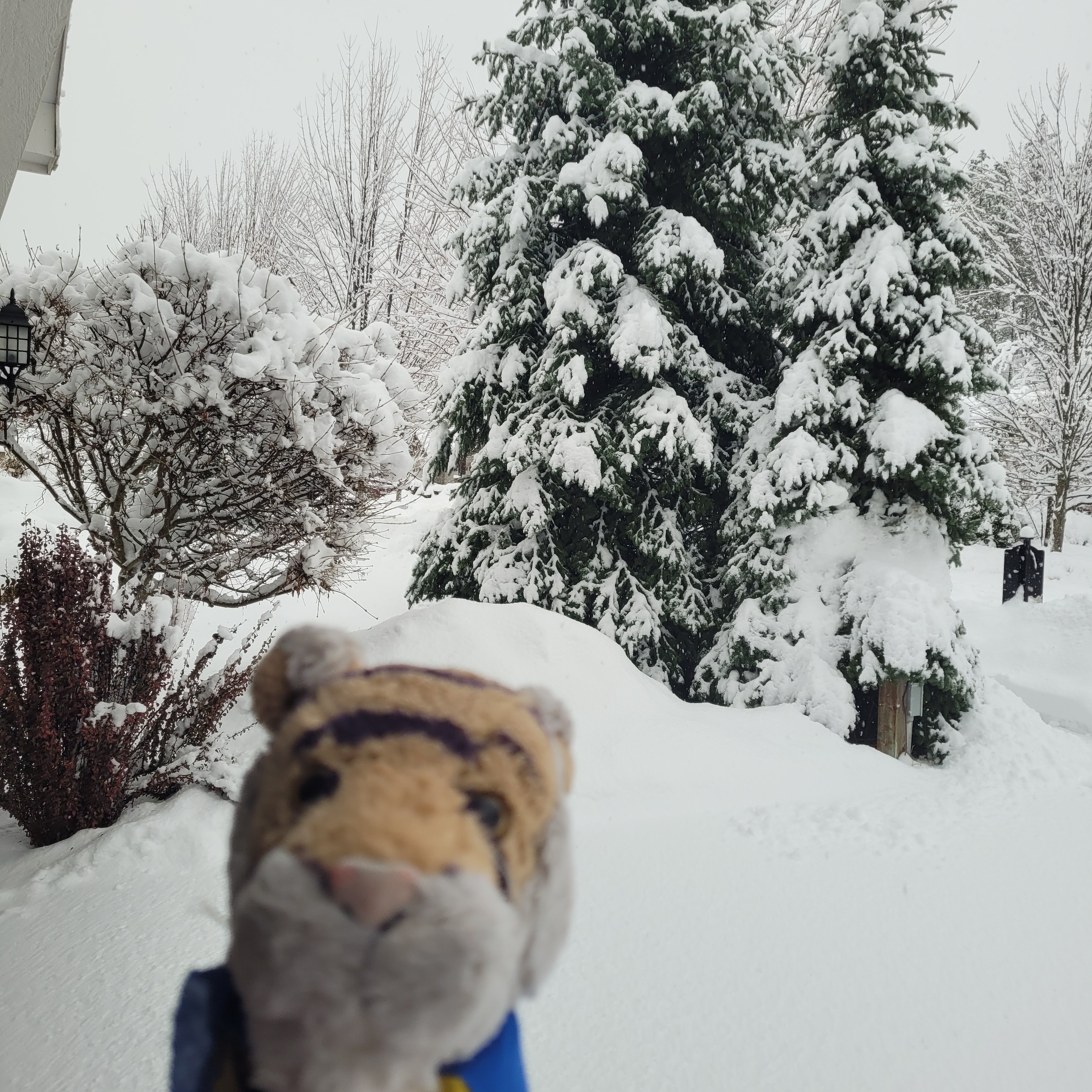 We have had so much snow! Here I am on the driveway showing how deep the snow is while mom shovels.