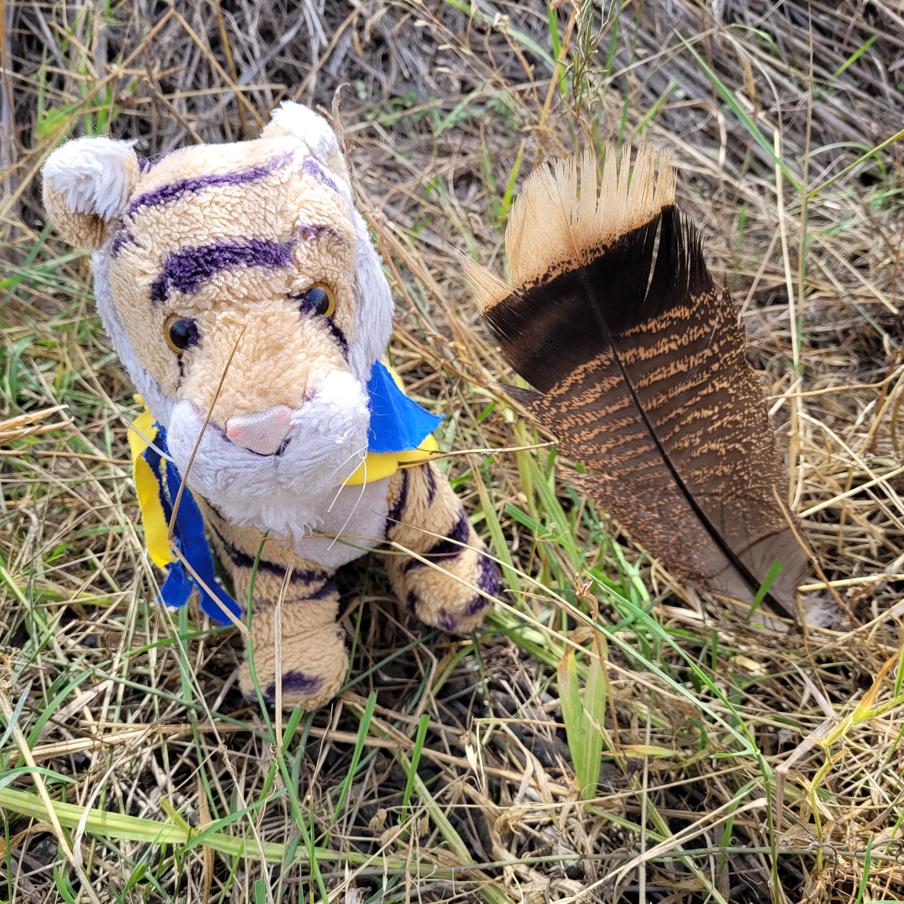 It rained in the morning but we were headed to Turnbull for a hike anyway! Mom brought her rain jacket but the rain stopped before we got there. Good timing for once!No more flowers on the wild roses, only rose hips which are the seed pods also considered the fruit and are used in things like jelly and tea.Water is amazing. Look at these drops of water left on a leaf after the rain.We saw lots of feathers! Maybe some of the birds are starting to molt. Later in the day after we got home it POURED rain. We need the rain but were happy to not get drenched while hiking.