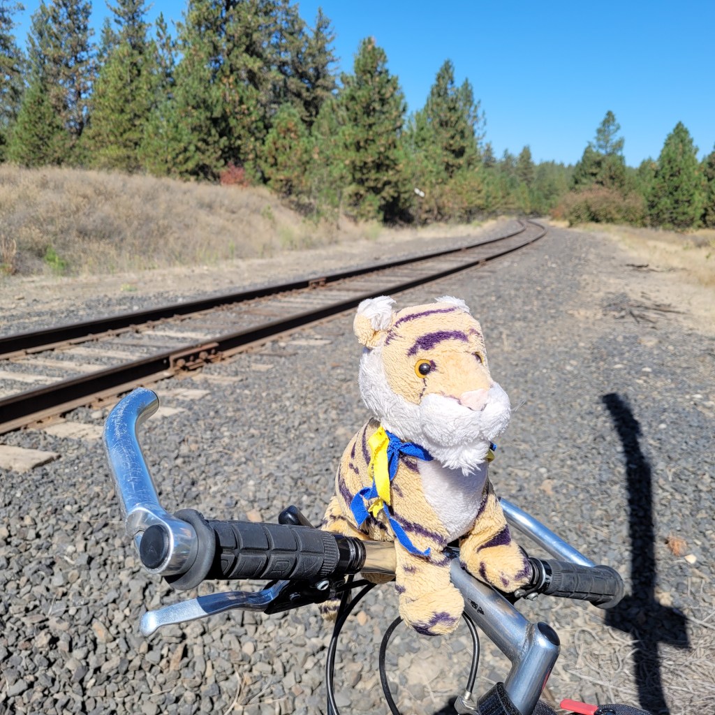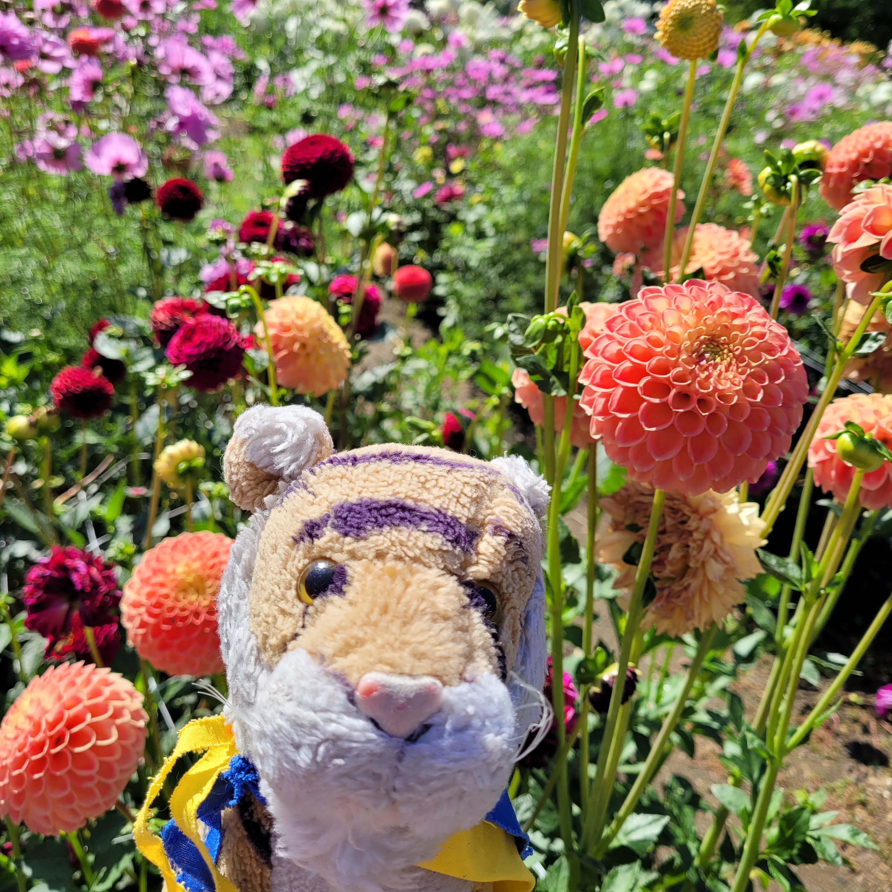 We went for a long bike ride and had a plan for where we were going but mom took a wrong turn! and we rode down a bumpy gravel road mom said she knew where we were but I’m not so sure. We ended up near some railroad tracks YAY! We ate our snack there while waiting hopefully for a train to go by I LOVE trains. On the way home (after mom figured out where we were) we stopped at the Northland Rosarium. Look at these amazing dahlias!