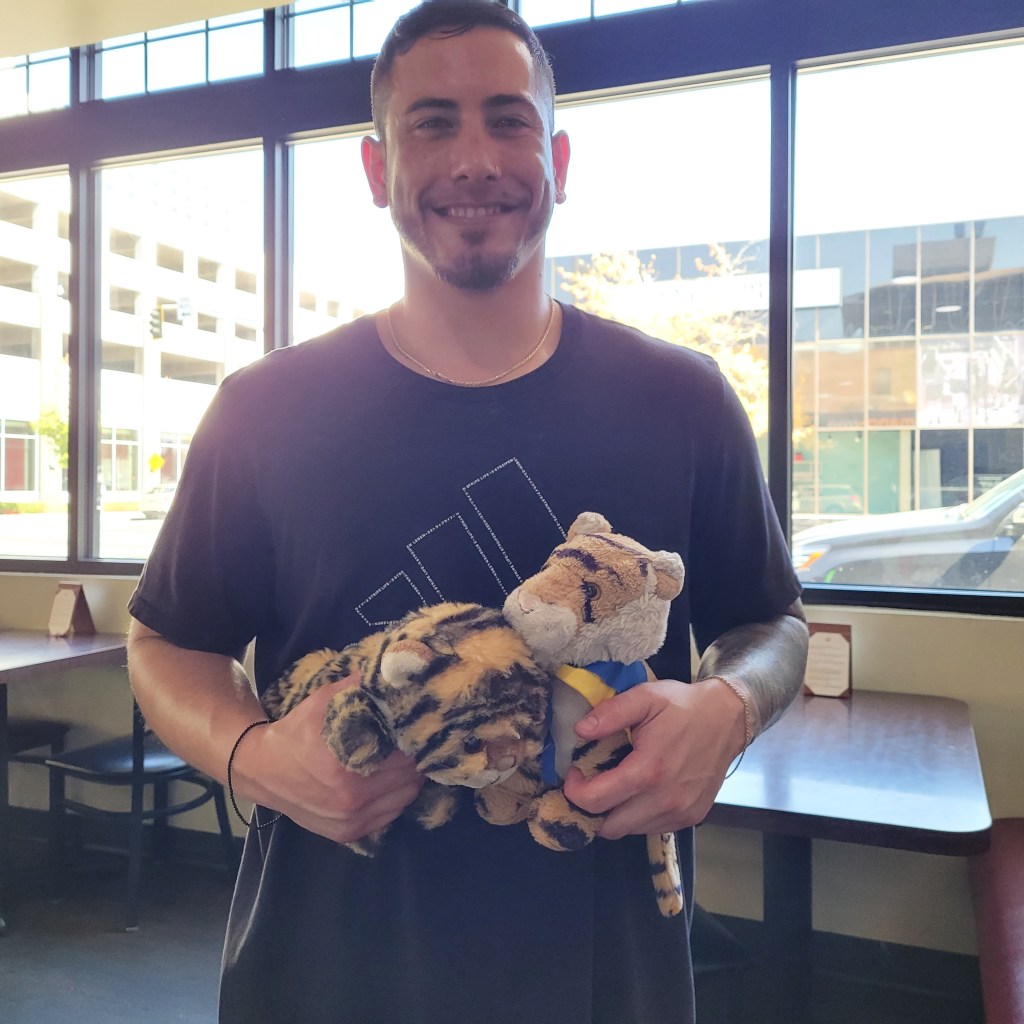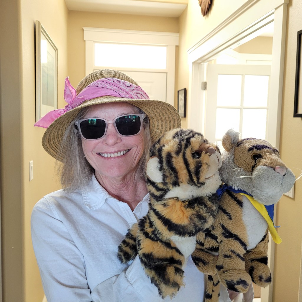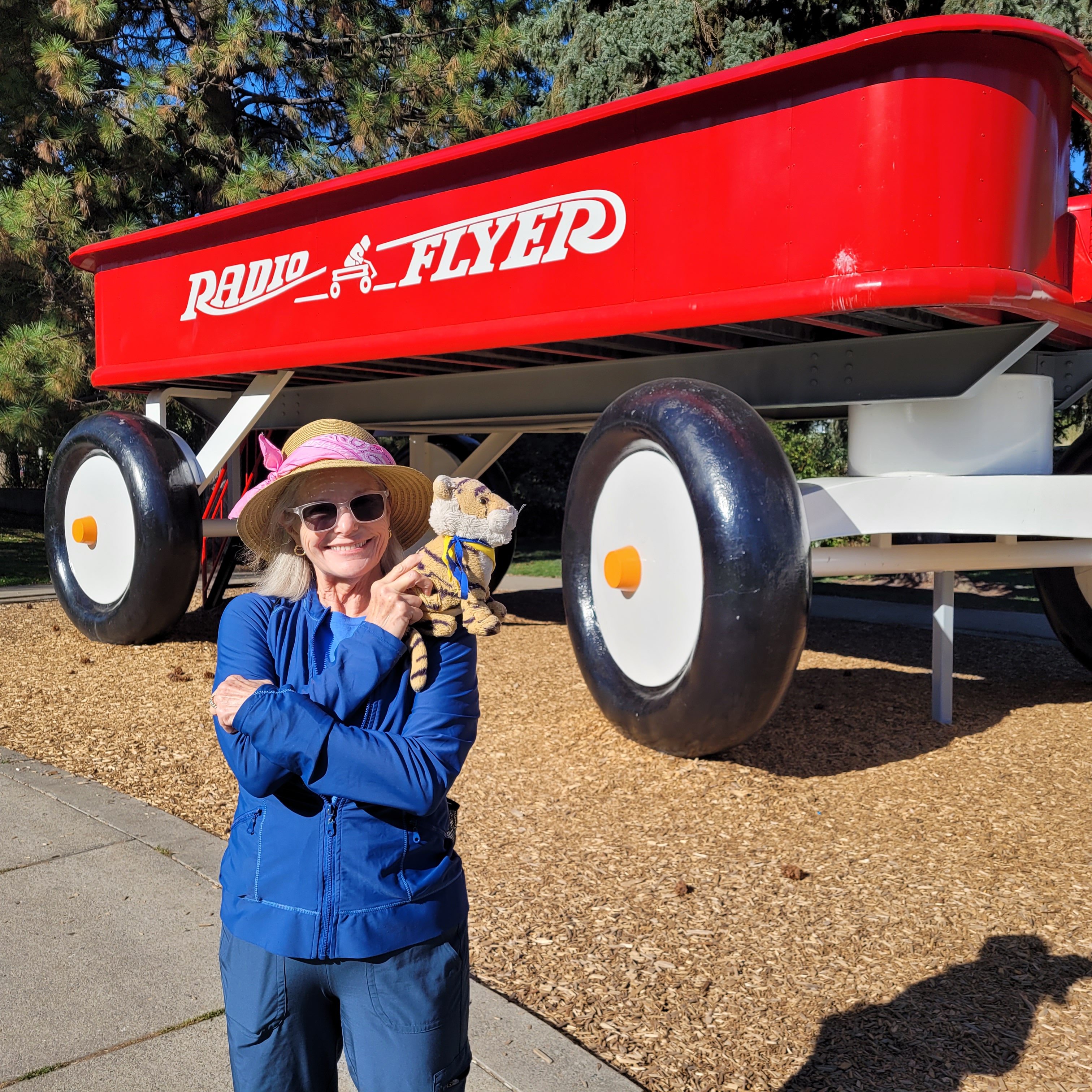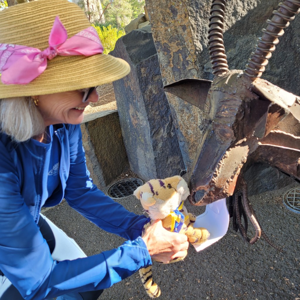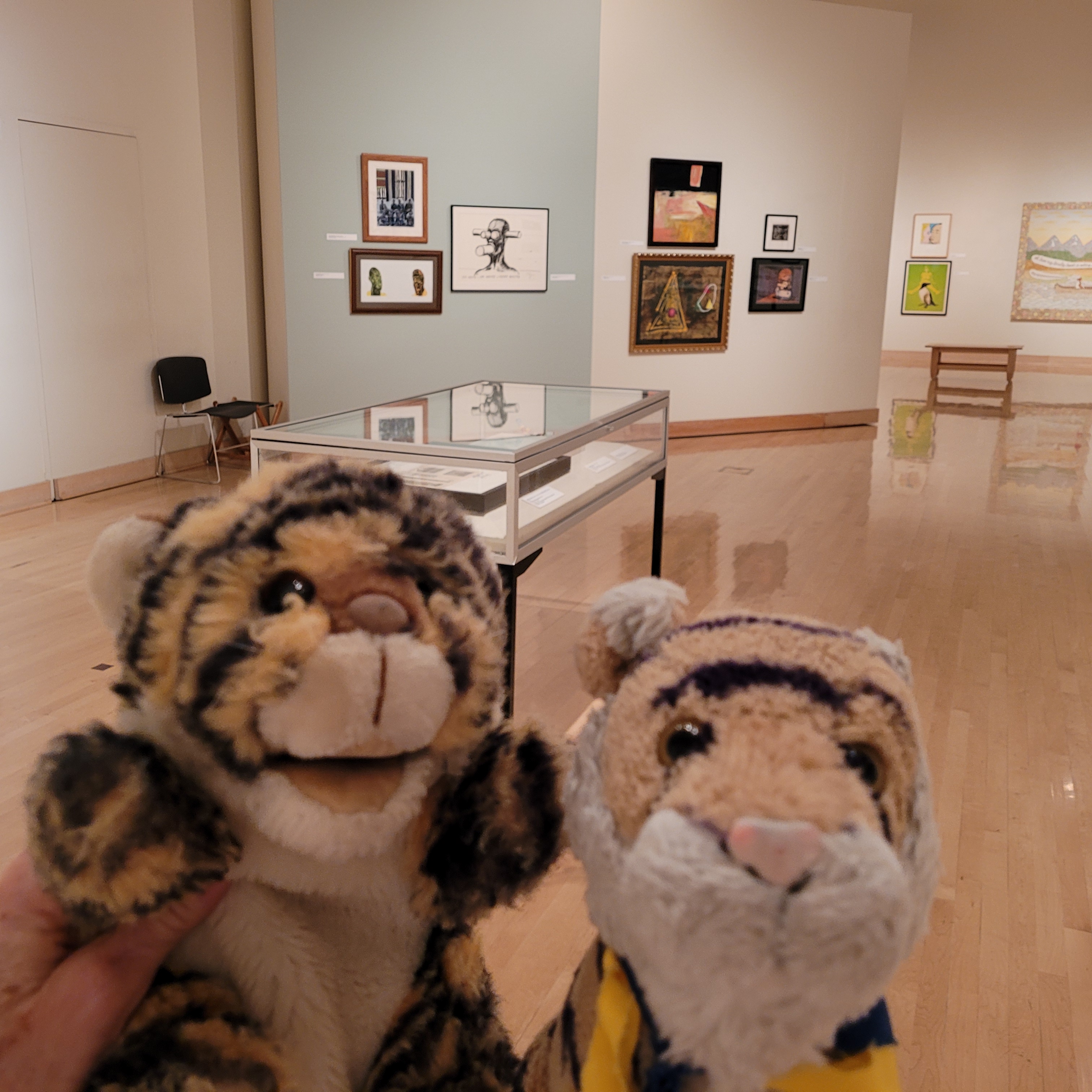OMG the best thing happened !!! Our cousin Bonita came to visit us!!! She is so nice and so fun and so beautiful!And OMG she brought Cousin Tiger with her!!!!!We went to the giant red wagon and played!Mom had some garbage saved up so we went to see the Garbage Goat! Yayyy!We rode the Looff Carrousel!There is a new playground I had not been to before! There was a SABER TOOTH CAT ride!!!!We went to see The Addams Family at the Spokane Civic Theater!!! Our friend David was in the show but mom FORGOT to take a picture!!On another day we went to Minecraft!! The local museum had an exhibit on Minecraft!This is an actual cube that is the size of a Minecraft block. They are one meter per side.Then we went to a farmers market in the area. Mom bought some potatoes and a watermelon – yum!After that we had lunch at the Mango Tree an Indian restaurant I LOVE Indian food and here I am with Robert our server who was so knowledgeable and super handsome!Oh wow we also went to the Jundt Art Museum on the Gonzaga campus.And then we went to the Big Crosby House and Museum you may not know it but Bing Crosby grew up in Spokane! It was a crazy busy fun weekend! Cousin Bonita and Cousin Tiger are super fun!