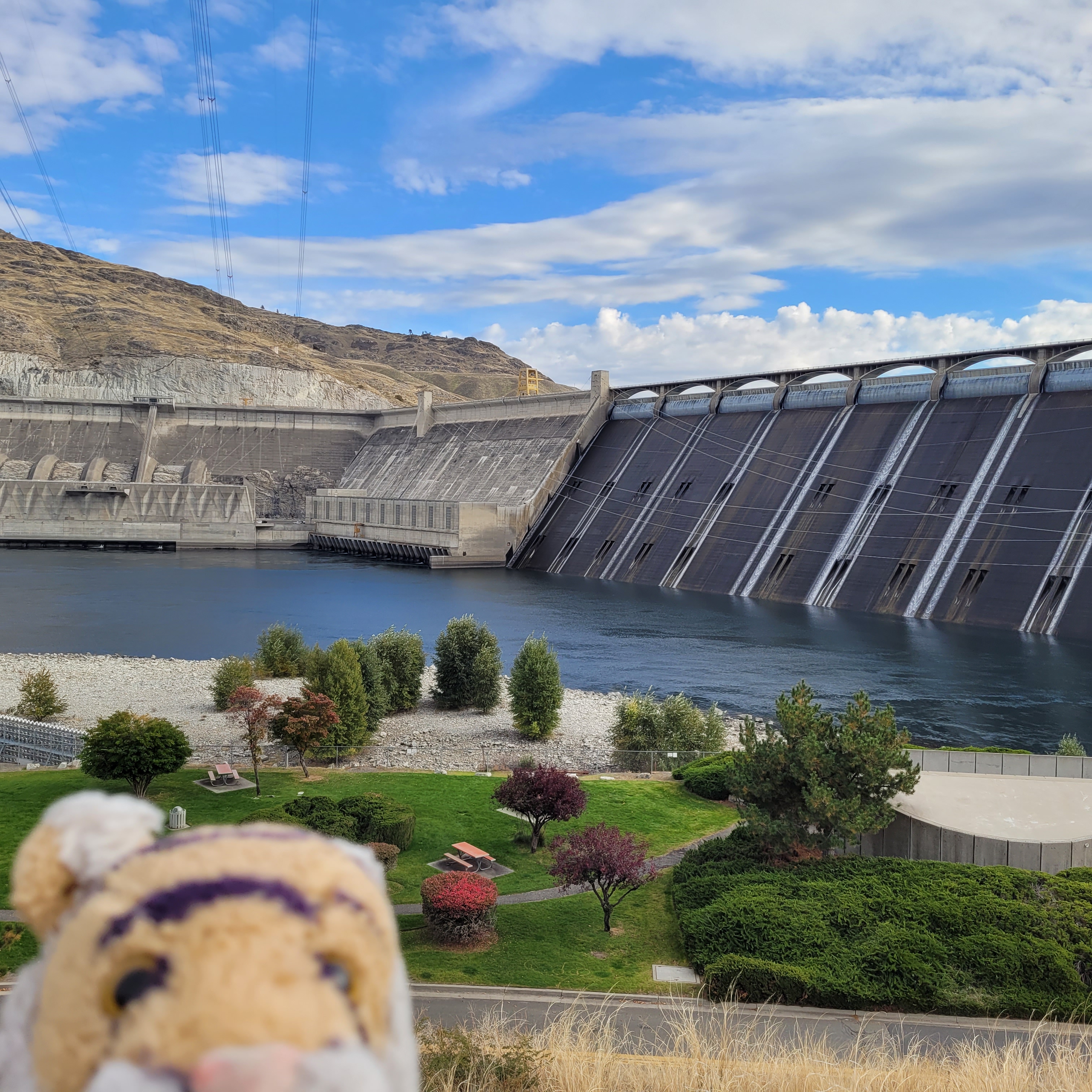 We went to see the Grand Coulee Dam! It is enormous! This is about half of it! It is the largest hyrdopower producer in the United States and can power 4.2 million homes.This is the Columbia River on the output side of the dam. It is spectacular!Along the river there are all kinds of beautiful coves and bays. It is a really great area to explore!We stopped at Steamboat Rock Park! It was a gorgeous day, sunny and warm. Cold weather is on the way!